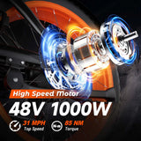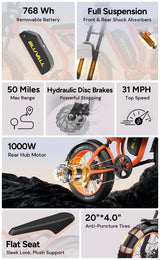 31 MPH Top Speed · 50 Miles · 1000W Motor