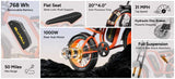 The 20"x4" fat tires provide a safe and comfortable ride on various terrains, including rocky roads, uphill paths, snowy ground, and mud, as well as on pavement and city roads.
